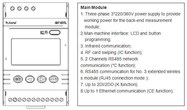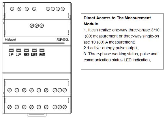 ADF400L Multi Circuits Energy Meter can achieve up to 12 three-phase or 36 single-phase direct access measurement or 12 three-phase mutual inductor access measurement, a hybrid of direct access and mutual inductor access through module combination measurement method.
