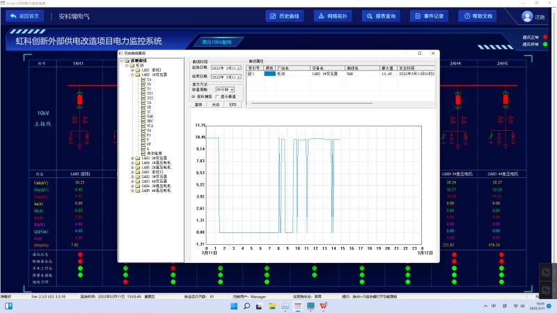 曲線分析功能:可以曲線形式展示實時數據庫和歷史數據庫中的模擬量、電度量數據,以便分析其當前運行狀態(tài)及有關歷史趨勢。