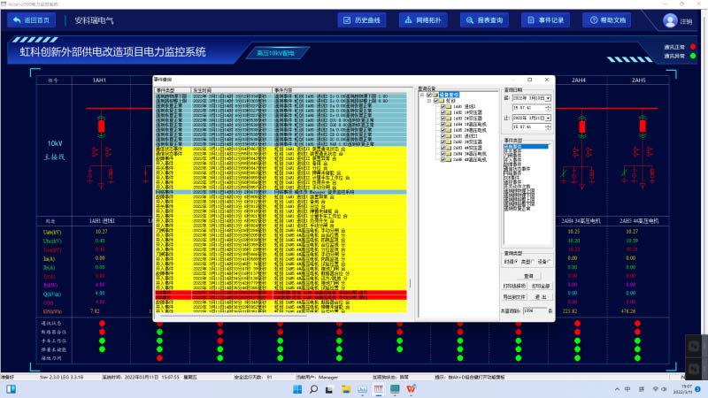 Acrel-2000電力監(jiān)控系統(tǒng)能夠對遙信變位,保護動作、事故跳閘,以及電壓、電流、功率、功率因數越限等事件記錄進行存儲和管理,方便用戶對系統(tǒng)事件和進行歷史追溯、查詢統(tǒng)計、事故分析。可以按時間、類型和設備進行查詢和排序。