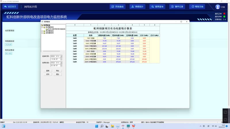 報表統(tǒng)計功能:通過報表,可以方便分析供電系統(tǒng)及各回路運行參數,形成運行日報、月報、電能統(tǒng)計日報、月報、年報。