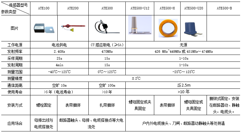 適用于高低壓開關柜內電纜接頭、斷路器觸頭、刀閘開關、高壓電纜中間頭、干式變壓器、低壓大電流等設備的溫度監測。