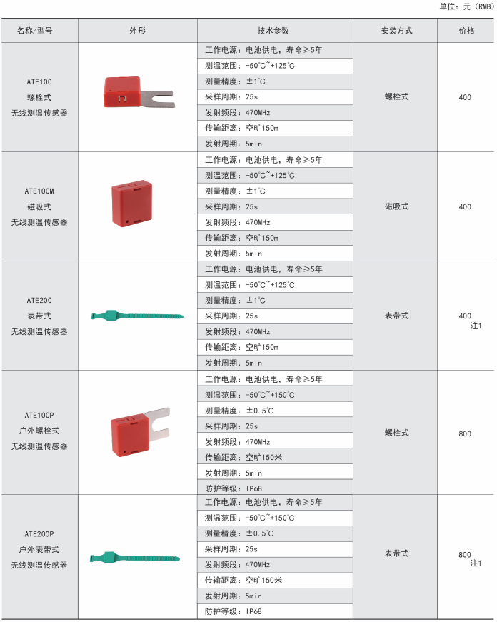 綜上所述,確定型號為:無線測溫裝置:ARTM-P9-300,1臺;無線測溫傳感器:ATE300,9個