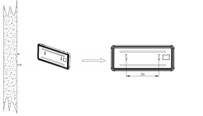 先將塑料膨脹管和螺釘固定到墻上,再將標志燈具背板上的壁掛固定孔對準螺釘后,掛于墻上,實現(xiàn)壁掛式安裝,如圖 所示。
