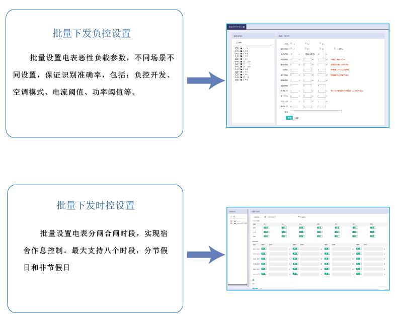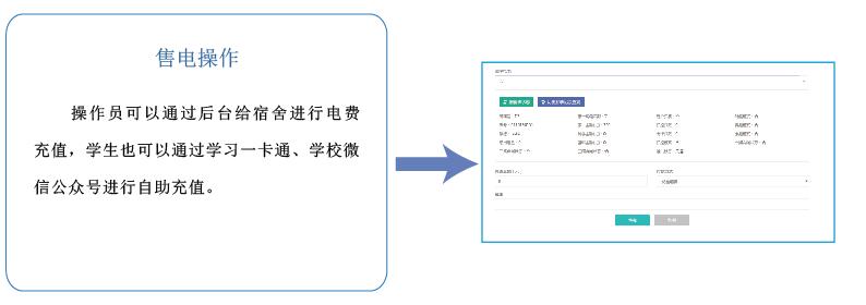 高校宿舍預付費電控系統集電能計量、收費管理、用電過程管理等功能于一體,具備遠程實時抄表計量、控制學生作息、惡性負載識別預警、校園一卡通自助繳費、微信查詢、打印用能報表等功能,創建節約校園、安全校園,方便校方進行信息化管理,并支持和智慧校園系統的數據對接。
